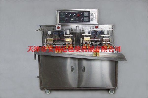 YBJ-4B系列自动液体包装机 YBJ-4B Automatic liquid packing machine 特点及用途 Features and usage 成型袋无气加压灌是目前国际包装行业流行的液体包装形式,具有包装形式新颖,造型多样,计量可靠,封合牢固,使用方便,包装材料成本低等优点,广泛应用于乳制品牛奶、酸奶、乳酸饮料等)、豆制(日本豆腐等)、调味品(酱油、食用油等)、饮料、矿泉水、洗涤用品、酒类等在无气状态下的包装避免二次污染。 本机采用进口计算机专用控制器及进口气动装置实现定量灌装、自动封口、自动落袋。 Airless pressurized filling with pre-formed bags is a popular form of packing in the international packing industry. It is characterized by its novel shape, varying design, reliable measurement, firm sealing, simple operation and low cost for packing materials. It is widely used in the airless packing of dairy (milk, yogurt and lactic drinks, etc.), soybean products (Japanese bean curd, etc.), condiments (soy, cooking oil, etc.), beverage, ice-cream, mineralized water, detergent, wine, etc. to avoid secondary contamination. The imported computerized controller and pneumatic device in the machine enables quantitative filling, automatic sealing and automatic bag dropping. A型/B型 生产效率:1000-2000 袋/时(根据袋的容量而定) 气源:0.15m3/min0.8MPa 功率:750W 机器重量:200kg 外形尺寸:1300×600×1250毫米 灌装精度:±2% 计量范围:100-250ml/袋 电源:220V 50HZ 薄膜厚度:>0.18mm Type A/ Type B: Capacity: 1000-1500bags/hour Gas supply: 0.8 MPa, 0.15 m3/min Power: 750 W Weight: 200 kg Size: 1300×600×1250 mm Precision: ±2% Measuring range: 100-250 mL/bag Power supply: 220 V, 50 Hz Film thickness: >0.18 mm.