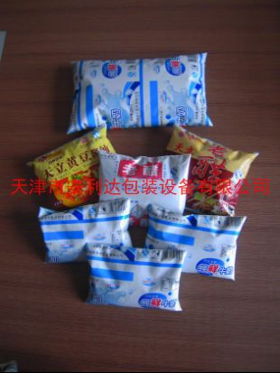 产品说明: 本机工艺全部采用304不锈钢材料制成,控制系统均采用PLC触摸屏操作,自吸泵或高位液罐定量灌装。 性能与特点: 主要用于大计量液态包装。如牛奶、果汁、酒类、酱油、醋、化工液体等。最大灌装1000ml。本机体积小,占地面积小,直热式封切。封切调节方便快捷,打印日期,全机均采用全气动结构无噪音。